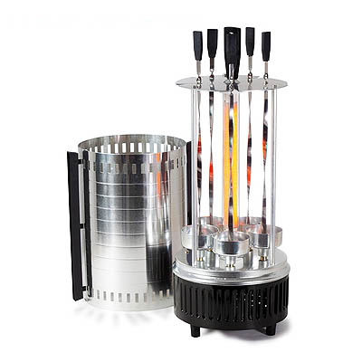 Чашечки для сбора жира и остальная часть корпуса электрошашлычницы выполнены из алюминия.
